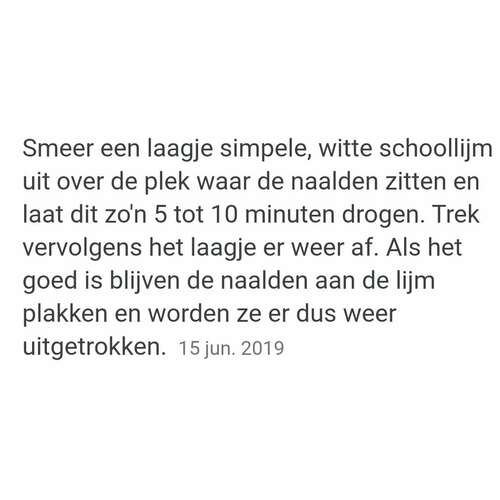 Met lijm werkt hopelijk, want dan hoef je er niet aan te zitten: