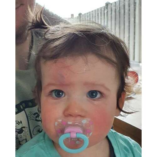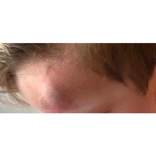 Niet zó'n grote bult, wel eens behoorlijk gevallen. Arts heeft toen wel gekeken, maar omdat hij huilde en goed alert was, leek er niks aan de hand.