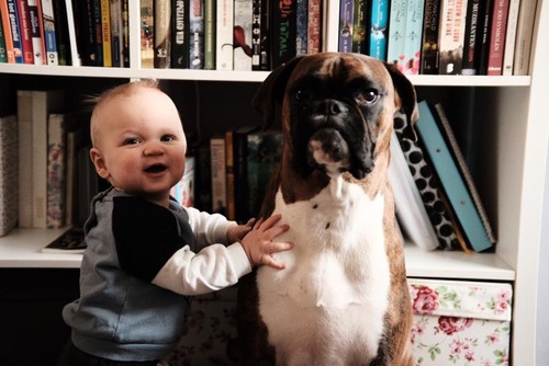 Leuk spelletje van maken? Als de hondjes aanslaan overdreven de handen op de oren doen en lachend zeggen 'ohneee hè, daar gaan ze weer!' Dan wordt het iets leuks i.p.v een stressmoment. De hond proberen stil te krijgen en je zoontje tegelijk troosten, dan wordt het nooit "leuk" (en een hondje waarbij het eigen is om snel te blaffen, die leer je het niet snel af). Als het juist een leuk spel wordt is het positief en kan je zoontje er uiteindelijk om lachen. En als je zoontje dan ook nog leert zelf z'n handen op de oren te doen, dan klinkt het minder hard, ook fijn.