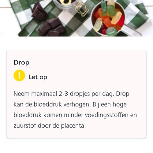 Nu mag je als zwangere max drie dropjes per dag eten ivm de hoge bloeddruk die het kan veroorzaken. Drie dropjes is niet realistisch. Wie eet nou drie dropjes?