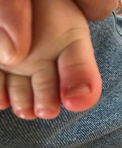 Had onze kleine ook, ingegroeide teennagel. Gebeurt vaak zei de huisarts.