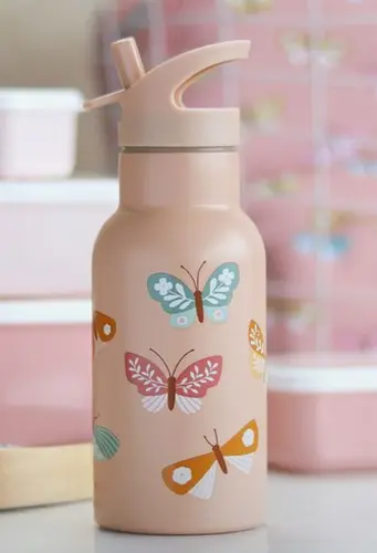 Wij hebben metal met zo'n knopje en dan drinkt het als bidon. Draai deksel kan onze dochter ook nog niet. Zie link hieronder. Natuurlijk ook andere prints verkrijgbaar: