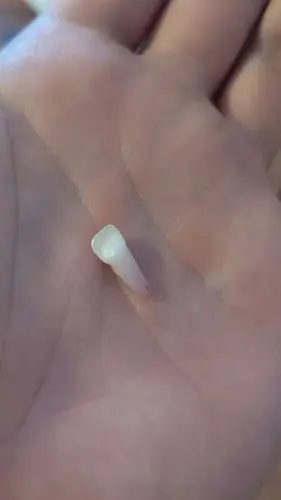 Je went uiteindelijk wel aan hoe het eruit ziet en over een paar jaar komt er wel weer een tand :-) zij heeft er waarschijnlijk geen last van dus kun je het maar beter loslaten.