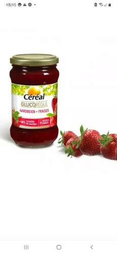 Jam van Glucoréal. Daar zit vrijwel geen suiker in.
