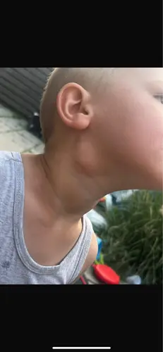 Ziet eruit als een flinke vergrote lymfeklier. Is je zoontje ziek of net zi ...