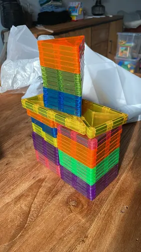 Wij zijn super tevreden over coblo. Ze zijn zo leuk! Schoonzus heeft magnatiles, maar doordat die tegels volledig plat zijn zien ze er veel meer gebruikt uit (lelijker). Magnetische tegels met maar 1 magneet per zijkant zou ik sowieso niet aanraden.
