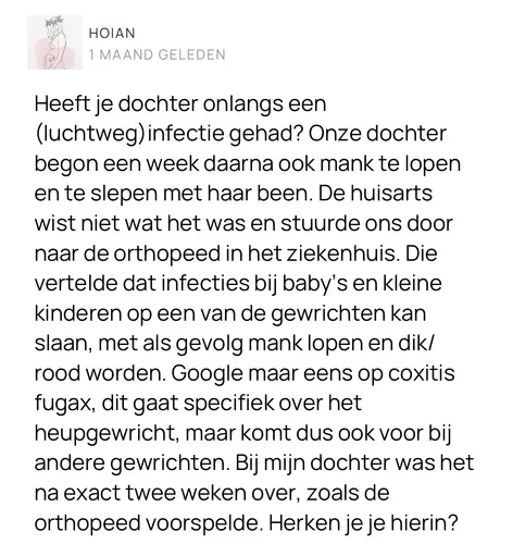 Mijn dochter heeft dit ook gehad toen ze 14 maanden was. Ik heb een reactie ...