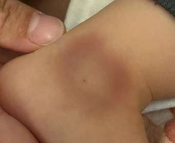 Zou het geen tekenbeet kunnen zijn? Het kan ook gewoon een muggenbeet zijn. Dat je kindje daar heftig op reageert. Ik hoop voor je dat je zsm naar de HA kan in ieder geval! En het kan laten uitsluiten wat het is. Heel onzeker nu....