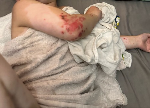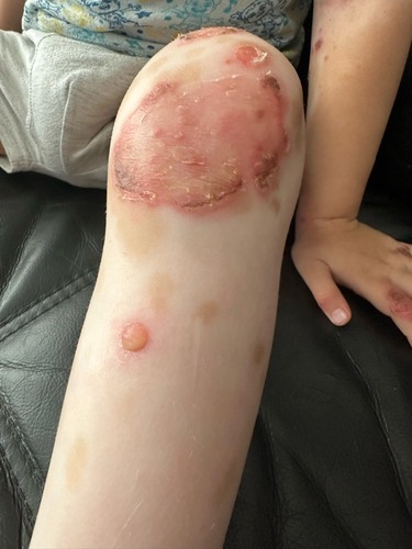 Ziet er uit als impetigo bullosa (krentenbaard met blaarvorming). Alleen an ...