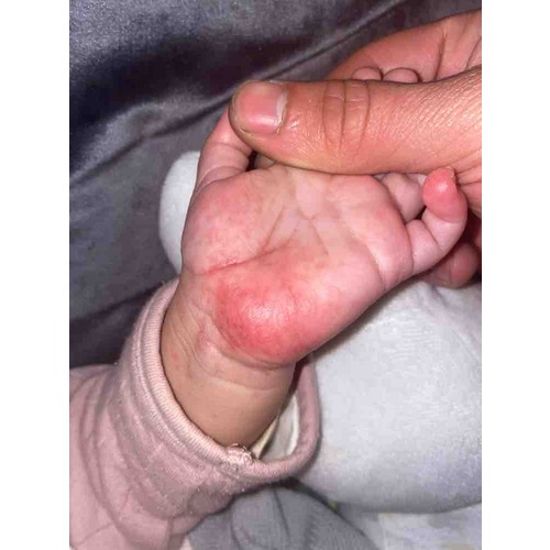 Mijn dochter van 1,5 heeft enorm last van jeukende handpalmen en voetzolen dit ziet er erg gezwollen en rood uit en gaat gepaard met hoge koorts.