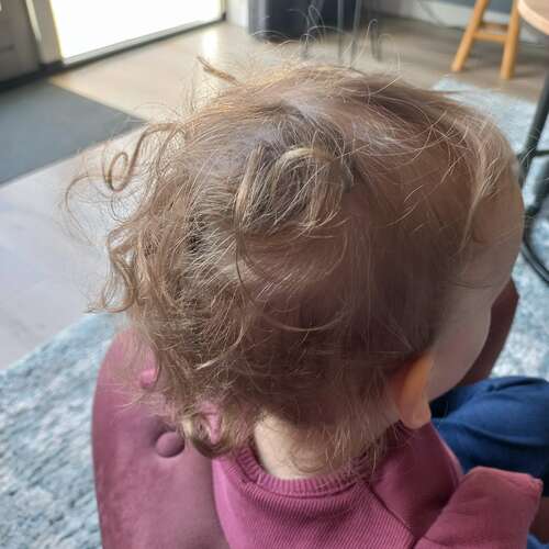Hier kun je t een beetje zien, heel fijn haar, ook snel klitten