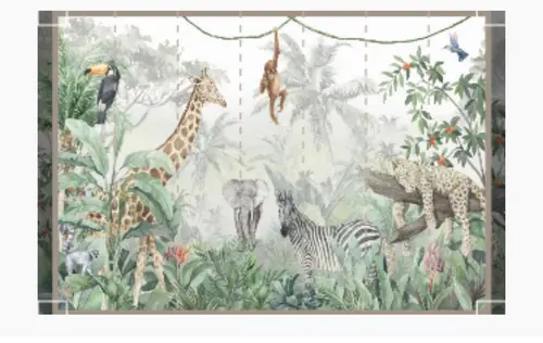 Mijn zoon heeft bijna hetzelfde behang, wij zijn gegaan voor een bruine kleur i.p.v groen wat we oorspronkelijk wilden. Wel ervoor gekozen dit in combinatie met wit te doen.. dus bruin vanaf de grond tot net iets hoger dan de helft en verder wit