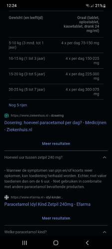 Het Farmacotherapeutisch kompas zegt hierover het volgende: Voor kinderen van 1–2 jaar bij lichaamsgewicht 10–12,5 kg: 240–250 mg max. per keer, maximaal 2-3 keer per 24 uur. Jouw kindje zou dus maximaal 750 mg mogen krijgen in 24 uur. Je hebt tot nu toe 600 mg toegediend.