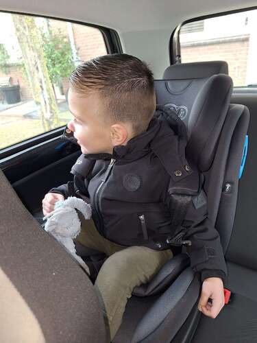 De eerste keer nam ik hem op schoot. Dat ging heel goed. De keer daarop in de autostoel en dat vond hij zo leuk dat hij daar sindsdien in zit.