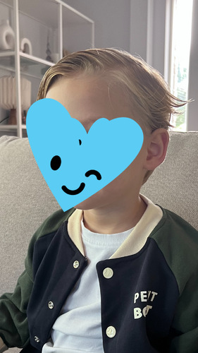 Hij heeft krulletjes, dus we hebben de kapper gevraagd om het in model te knippen zonder dat de krullen verloren gaan. Verder niet echt een model erin. Ik vind hem nog wat jong om allerlei haarproducten te gaan gebruiken, dus we hebben gevraagd om iets wat past bij hoe zijn haar op natuurlijke wijze valt.