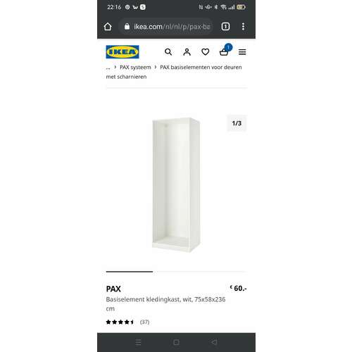 De PAX bestaat uit allemaal losse onderdelen zodat je hem helemaal naar eigen smaak kan samenstellen. Welke deurtjes of laatjes je wil, maar ook hoe hij er aan de binnenkant uit moet zien. Op de website staat wel ergens een soort app waar ie hem kan samenstellen. Zelfde voor een aantal andere series bij IKEA trouwens. Ik vond zelf de Pax een beetje lomp voor peuterkamer, dus wij hebben de Platsa.