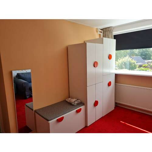Bedoel je zoiets? Die zijn allemaal zonder deur toch? Ik moet er wel deurtjes in hebben, oogt wat rustiger dan dat ik al die kleren zie en deurtjes kan ik nog een slotje opzetten aangezien hij graag alles uit de kast haalt馃槄