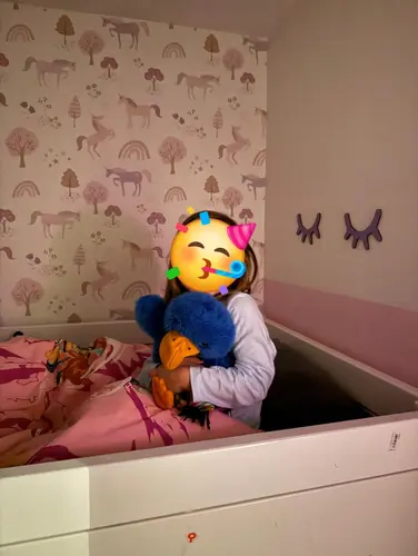 Wij hebben gekozen voor een roze paarse kamer met regenbogen unicorns etc. Lekker chaos. Het zijn alleen hele lichte kleuren... (op de foto is het wat heftiger) waardoor er toch een soort van rust ontstaat. 1 kant met behang en 2 kanten half kleur en half wit. Het idee erachter is dat ze geen donkere dingen op haar muur ziet ofzo...die weer kunnen worden aangezien als spoken of andere enge dingen. Als het licht uit is en haar nachtlampje aanstaal zie je de dingen op het behang amper. Heel rustgevend. Niets voor een jongetje natuurlijk maar misschien iets om over na te denken. 馃