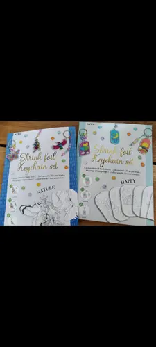 Verder hebben we bij de action deze sets gehaald. Super leuk! Je kleurt het, stopt het in de oven en het krimpt. Dat krimpproces is ook heel geweldig voor peuters om naar te kijken. Daarna samen kraaltjes rijgen en je hebt super leuke sleutelhangers