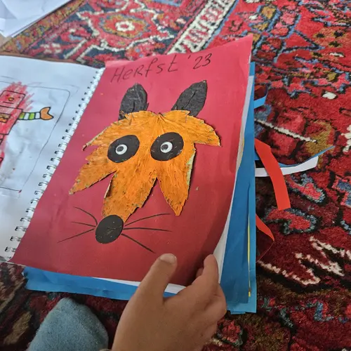 Hier gaan we op de dagen dat we thuis zijn verven, kleuren, met stempels, kleien. Geen knutselpakketten maar lekker simpel. Of ze helpt in het huishouden, was vouwen, koken of iets bakken