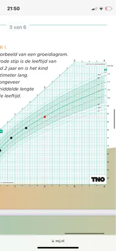 Wij hebben toevallig ook vandaag ons meisje uit april 22 gemeten omdat ze bij de laatste officiële meting erg klein gebleven leek. Vandaag 86 cm en daarmee al iets beter richting haar lijntje.