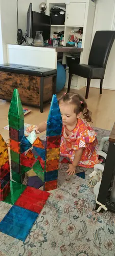 Wij hebben connetix t grootste pak pastel en grootste pak knikkerbaan. Ook hebben we magna tiles met noordpool dingen en die licht geven, kan allemaal samen!
