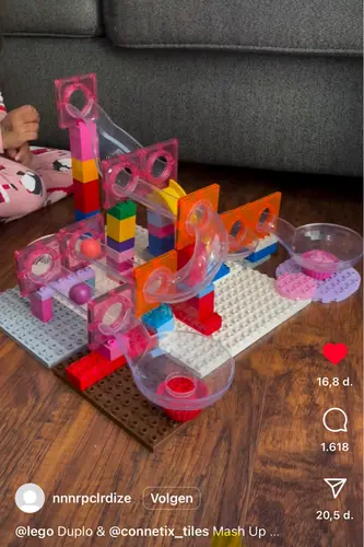 Ohh de knikkerbaan. Dat zou kunnen, duplo is hier al een hele tijd de deur uit. Ik geloof dat Magnatiles ook geen knikkerbaan heeft dus dan past dat sowieso niet 😁