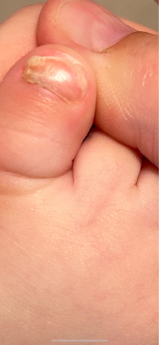 Het zit ook op haar teennagels maar haar teennagels waren sowieso al heel lang gek, althans haar grote teen is al vaker opgevallen dat het nagelriempje los stond van haar nagel alleen nu is bijna ieder nageltje aangedaan
