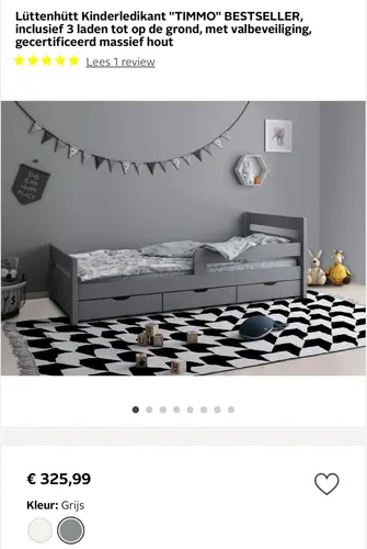 Wij zijn ook gelijk overgegaan naar een groot bed die lang mee kan. We zijn heel tevreden over deze, heeft ook la’tjes en een uitvalbescherming. Het is ook in het wit verkrijgbaar.