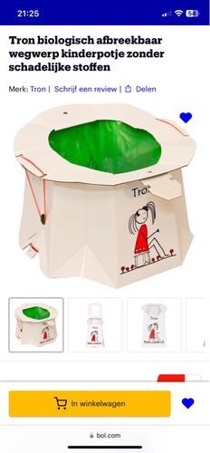 Wij hebben een gewoon potje in de auto staan voor onderweg, van het weekend waren we naar Duitsland en is hij regelmatig gebruikt.