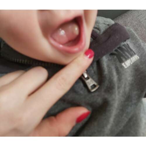 Ziet eruit als een aft. Zit hij veel met zijn vingers in zijn mond? Kan daardoor komen :)