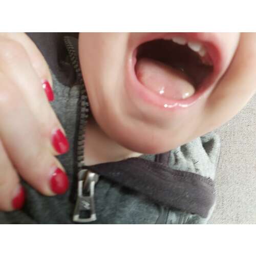 Tong verbrand misschien? Heeft ie iets te warms gegeten?
