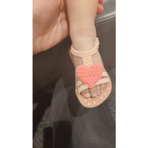 Ik heb ook de sandaaltjes gehad met het hartje van Ipanema, heel schattig en ze ruiken zelfs zoet. Mijn dochter begon toen net met lopen en dit was wel oké. Er zit totaal geen stevigheid in en de voetjes glijden er snel naast. Leuk voor in de wandelwagen en fijn tegen de hete tegels maar blote voeten of Teva’s ging toch het beste.