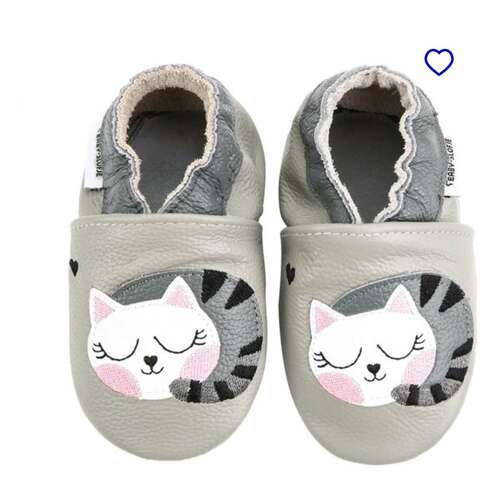 Wij hadden gewoon leren slofjes omdat het advies is helemaal geen schoenen te gebruiken voordat ze écht lopen