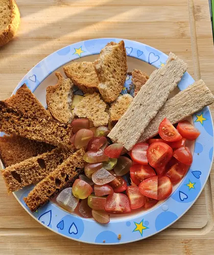 Misschien gaat het meer om het proeven en nieuwe smaken leren? En het is redelijk gezond en voedzaam zo te zien. Dat dacht ik altijd bij een groente snack dan heeft ze dat maar binnen. Ligt de druk er ook minder op dan bij het avondeten soms. Dit ziet eruit als een feestje