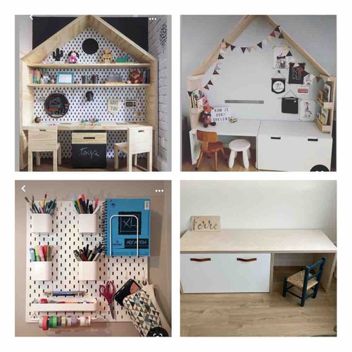 En aan de zijkant of op de achterwand wil ik van de IKEA zo鈥檔 plaat ophangen waar ik bakjes aan kan hangen voor potloden enzo.