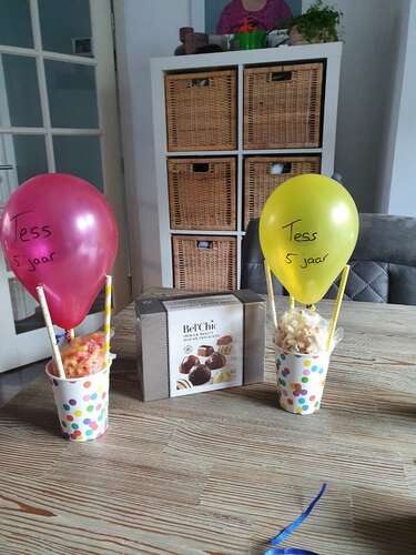 Mijn dochter werd vorige maand 2 jaar en ze heeft bellenblaas getrakteerd en daaromheen vlindervleugels geplakt en een leuk gezichtje erop. Google maar eens vlinder bellenblaas traktatie. Dan zie je genoeg voorbeelden 馃槈. Mijn dochter heeft meegeholpen met verf om mooie stippen te zetten op de vleugels.