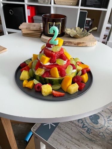 Ik heb vanmorgen dit watermeloen taartje maakt. Mijn zoontje wordt maandag 2 jaar en heeft dit vandaag getrakteerd. Super makkelijk te maken en volgens mij was het erg lekker, want ze stuurde foto’s dat alle kinderen het aan het eten waren 😁