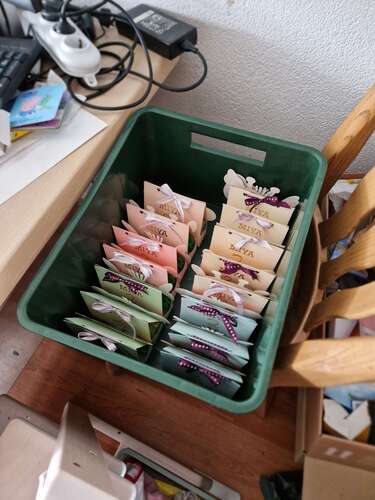 Ik had bij de Hema papieren bakjes gehaald voor traktaties, daarin een doos ...