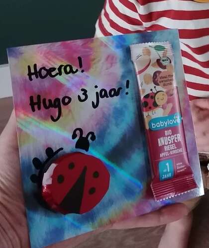 Deze kaartjes bij Action gekocht. Onder lieveheersbeestje een babybel-kaasje en klein appelreepje erbij naast. Heb in het verleden een fruitspiesje gemaakt of van die kleine uitdeelboekjes van kikker & z'n vriendjes gedaan. Voor gastouder vaak iets van chocola (iets origineels moet ik ook nog verzinnen 🙈)