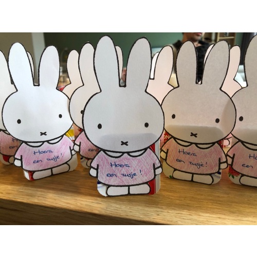 Ik had een badeendje met een koekje gedaan. En de tekst 'ik ben niet meer in eentje'.