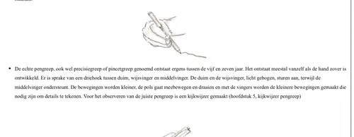 Ik kwam dit pas tegen . Ergens aan het einde staat een plaatje met de ontwikkeling. Ik zie dat ik bij 4 ben blijven steken, de vierpuntsgreep. Onze dochter van 3j+4m heeft die nu ook sinds een week of twee. Maar dus nog niet de hele goede driepuntsgreep.