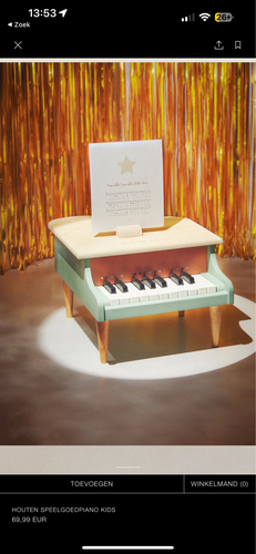 Bij de zara hebben ze nu een hele mooie houten kinderpiano met bladmuziek op kleur zo kunnen ze piano leren spelen, je kan hem vinden bij zara home