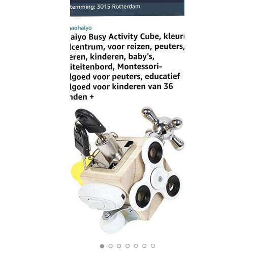 Mn moeder kwam met het geniale idee om iets te maken voor in het vliegtuig. Ze heeft alles bij de Gamma gekocht. Een stoelpoot (klein zodat het in m'n handtas paste) en daarop van alles geboord; lichtschakelaar, fietslampje, knopje van een deurbel, touwtjes, waterpasje, wieltjes. Ik dacht nog straks gooien ze het weg bij de douane 😅 maar nee niet gebeurd!