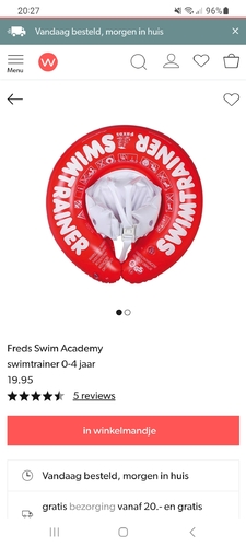 Wij hebben 'flipper' zwembandjes en dat gaat super goed, omdat er onder de armen ook nog drijfvermogen heeft.
