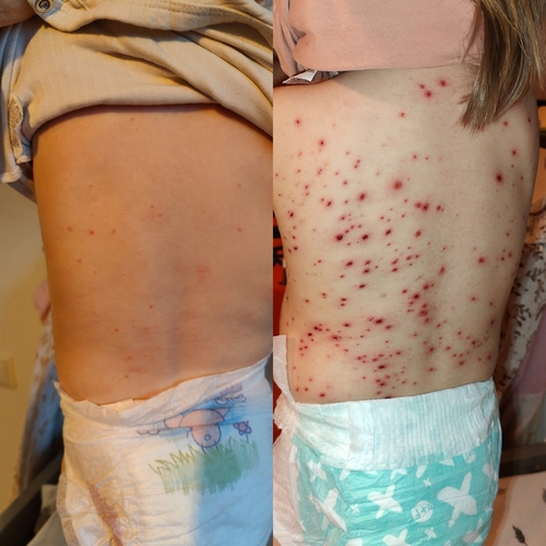 Hier hebben we het ook net overleefd. Kleuter stond helemaal vol, tot in z'n mond 😔 jammer genoeg ook veel jeuk.