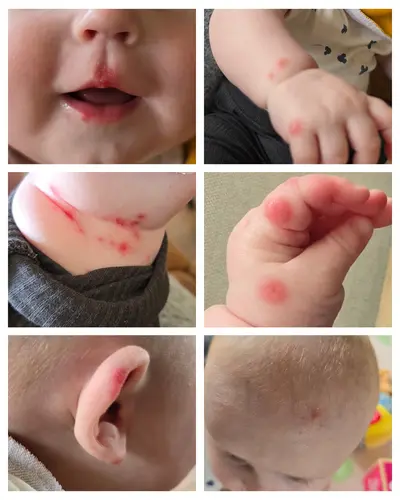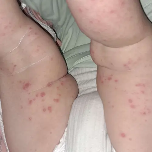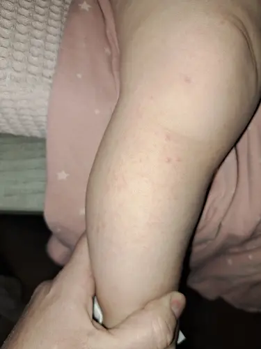 Maar het is dus alleen achterkant benen en billen, en de duim waar ze mee duimt. Ook zit het (waarschijnlijk) in haar mond (wil niet eten en kwijlt enorm terwijl ze nooit kwijlt)