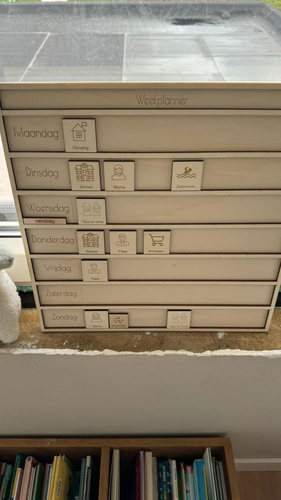 Wij hebben de weekplanner van 'thuis bij muis'. We hebben hem aangeschaft voor nu om met de magneetjes te spelen en ze te leren kennen (wat betekenen ze) en dan later ook echt gebruiken.