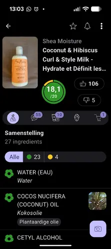 Als je om minimale troep geeft, zo ik Yari alvast vermijden. Kijk in de INCI app voor krulproducten met minimale zooi. Ik gebruik nu Shea Moisture gel en de milk. Andere producten van Shea Moisture zit wel weer zooi in.