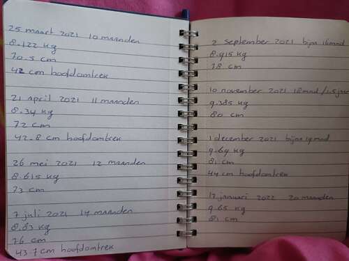 Hier ook een klein jongetje. Ik hou alle metingen bij. Hij is inmiddels bij ...
